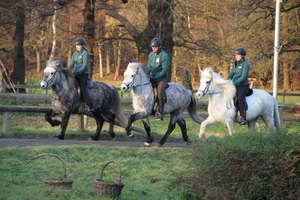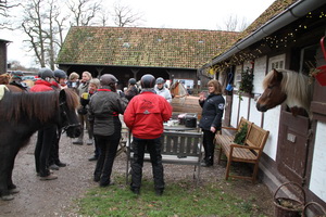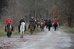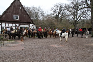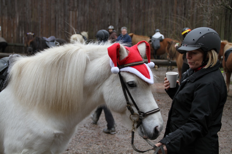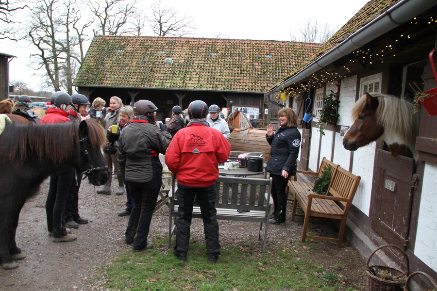 Nach Einnahme von Marlises berühmten "Auf-Punsch-Mittel" (unter strenger Aufsicht von Vonar) hat sich eine Gruppe von 35 Pferd-Reiter-Kombinationen auf den traditionellen Adventsausritt begeben. Obwohl akuter Schneemangel herrschte, gab es nur fröhliche Gesichter und anschließend Kaffee,Tee und leckere Kekse. |
