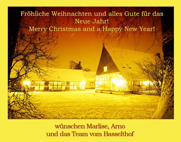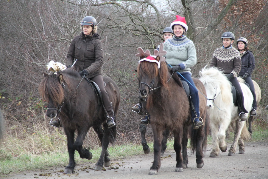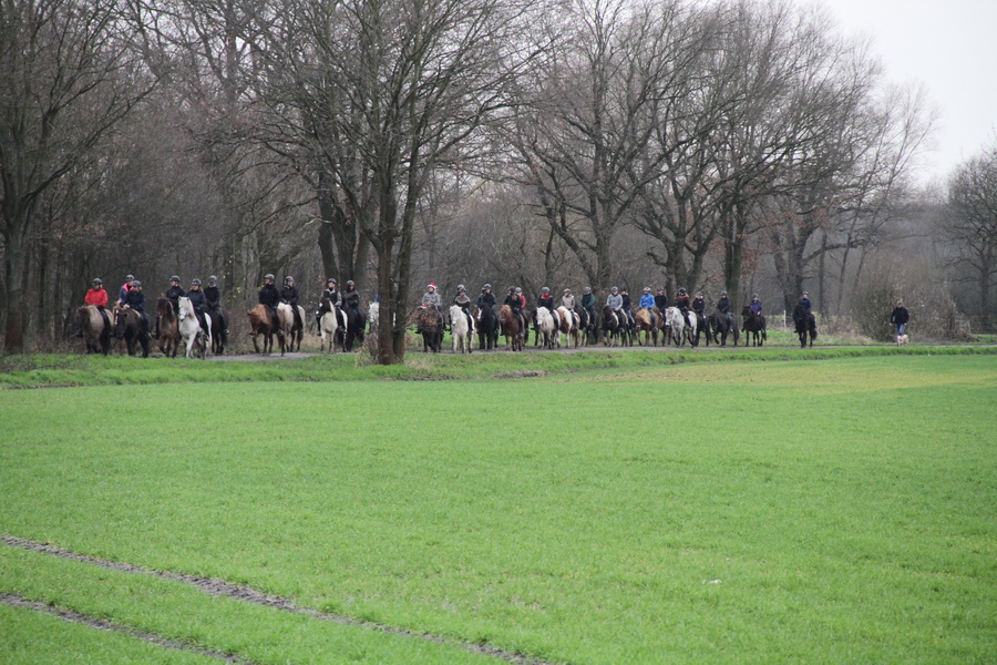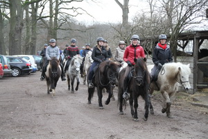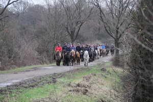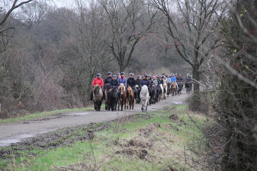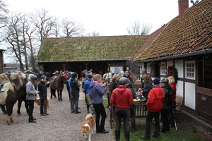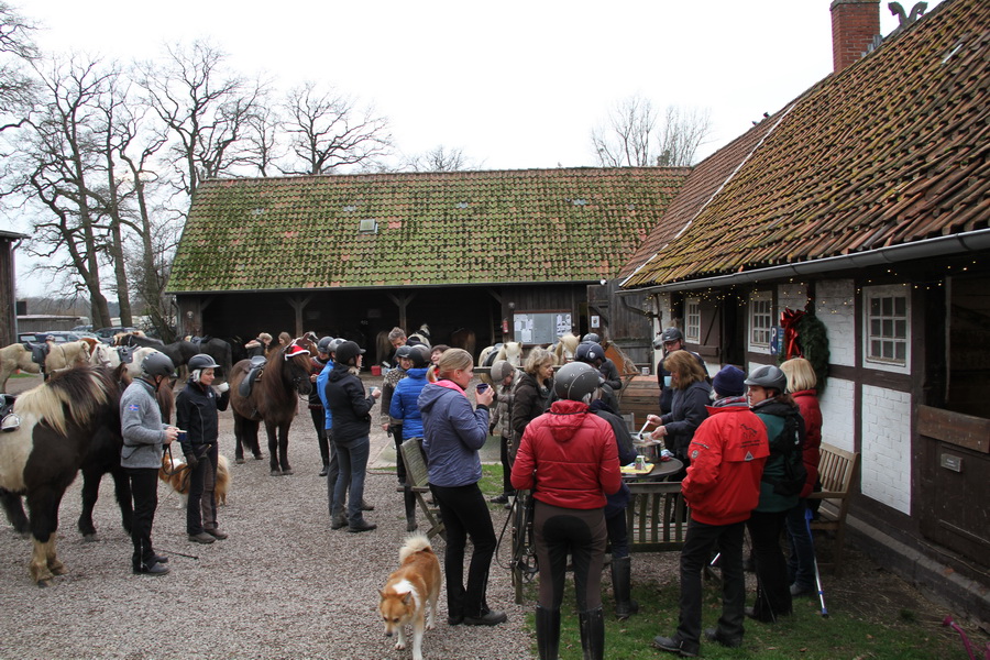 Trotz fehlendem winterlich-weihnachtlichem Wetter (bei + 12 °C) hat sich eine gut gelaunte Truppe zum traditionellen Basselthof-Adventsritt versammelt. |