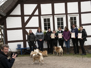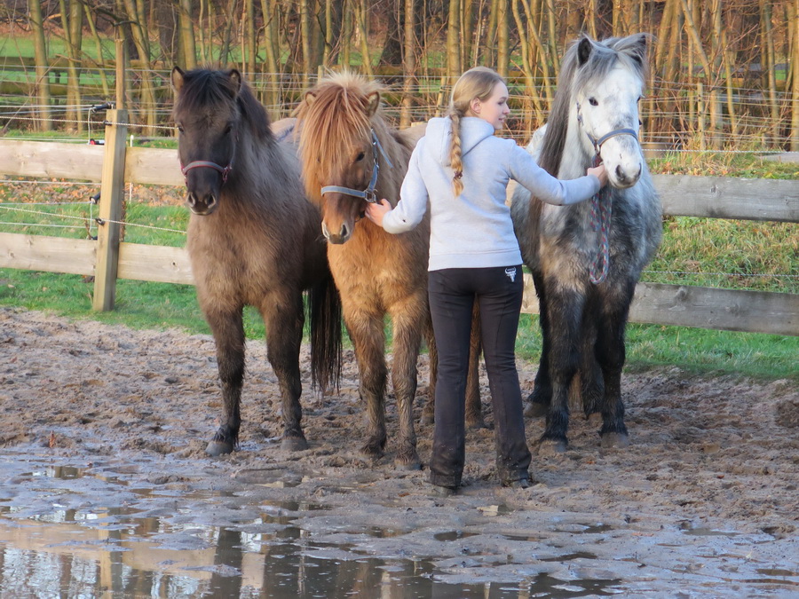 Die Osterferien wurden für die intensive Weiterbildung von Pferd und Reiter genutzt. Als Erstes stand der wichtige IPZV-Basispass "Pferdehaltung" unter Charlotte's Regie auf dem Programm. Die Teilnehmer lernten viel in Theorie und einiges auch in der Praxis und stellten sich danach trotz des wütenden Tiefs "Niklas" erfolgreich der Prüfung.