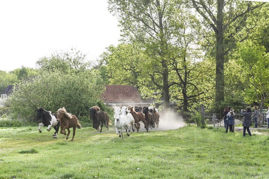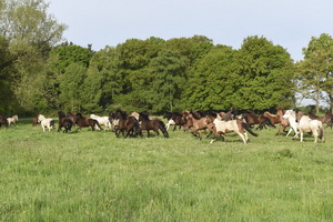 Viele Monate Warten und dann ist Pferdefeiertag... --- Anweiden --- ... wie jedes Jahr rast eine übermütige Horde auf das frische Grün und genießt den Beginn der Weidesaison |