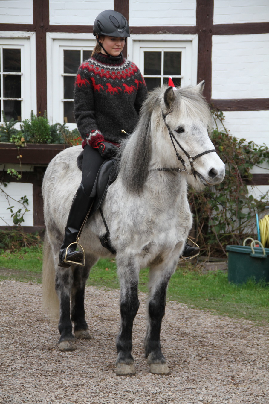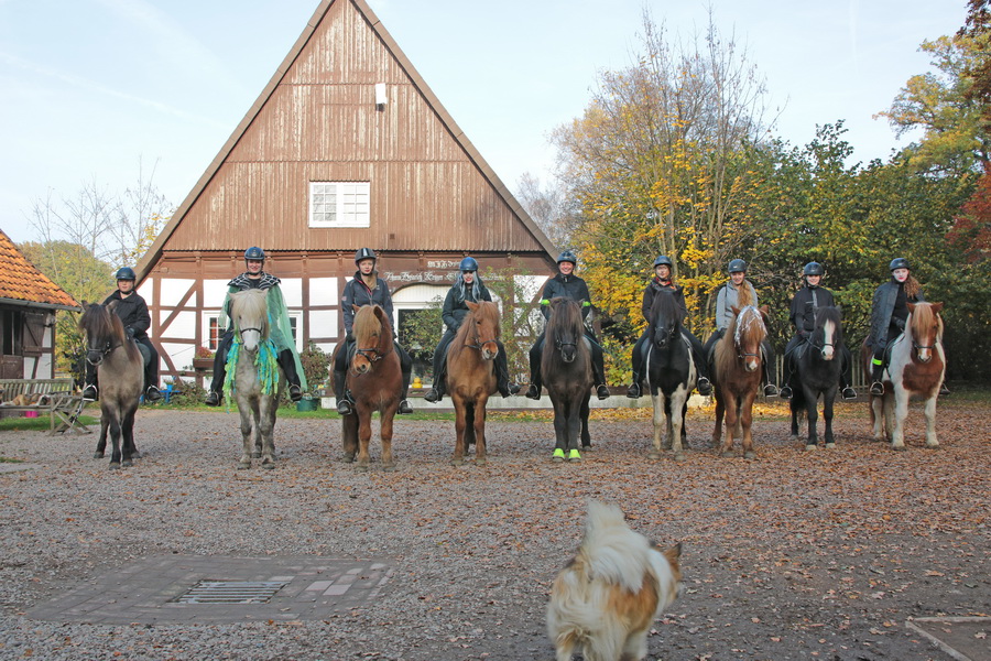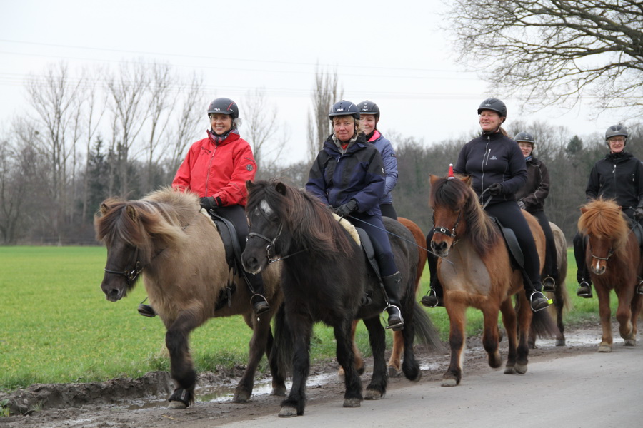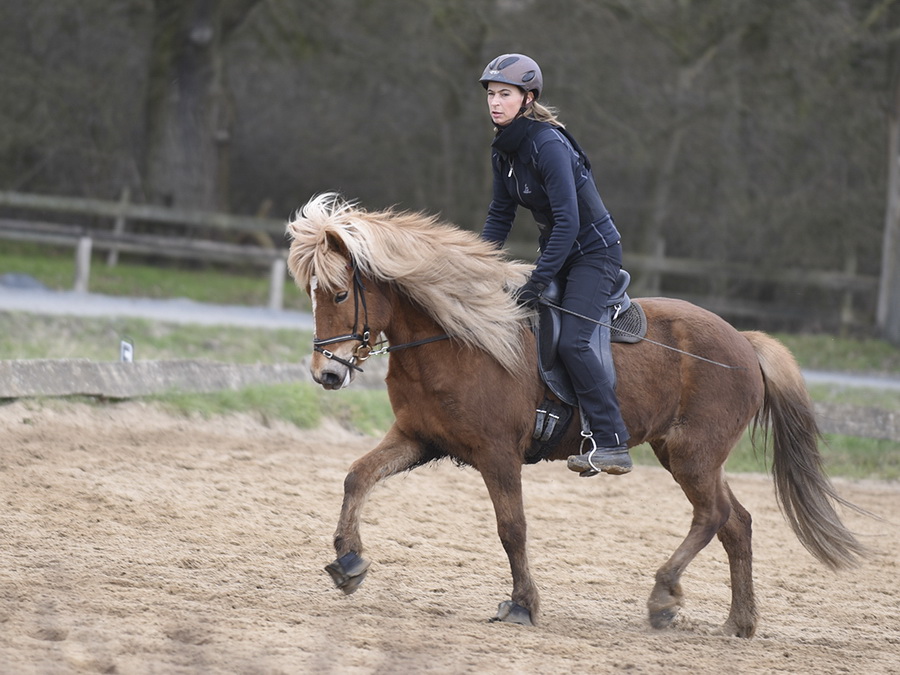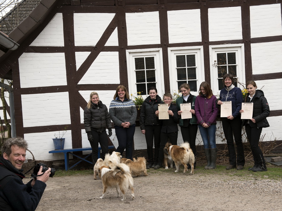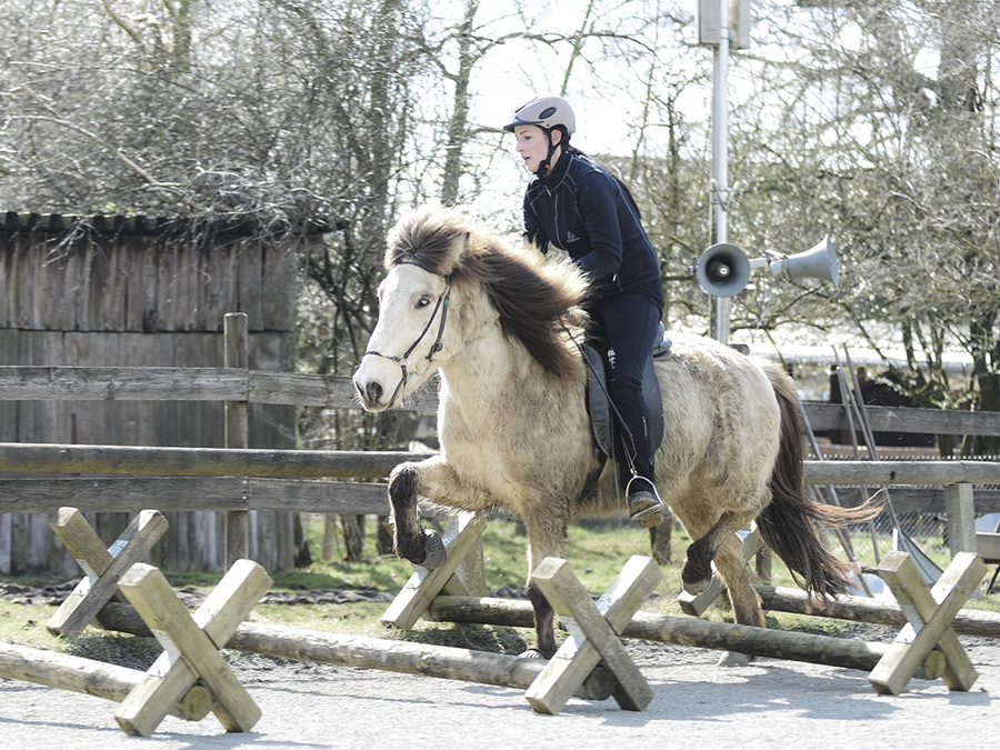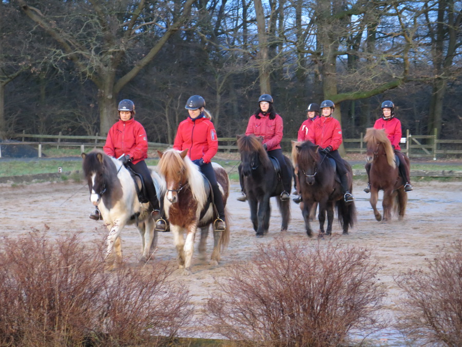 Direkt im Anschluss fand dann gleich der Osterlehrgang mit den IPZV-Reitabzeichen-Prüfungen statt. Tölt- und Gangreiten, Dressur und das Reiten im "Leichten Sitz", der nicht so leicht ist, wie es sich anhört, dazu jede Menge spannende Theorie, - sechs Tage sind fast zu kurz für das Pensum. Alle Reiter und auch die Reitlehrer Marlise und Charlotte waren hochmotiviert dabei.